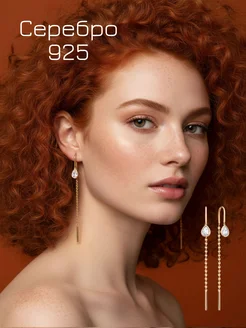 Серьги серебро 925 протяжки