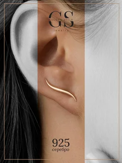 Серебряные серьги каффы 925 пробы позолоченные