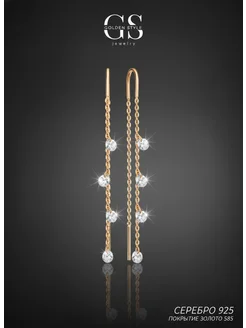 Ювелирные серьги серебро 925 протяжки позолоченные