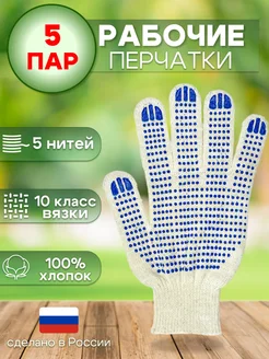 Перчатки рабочие хб строительные хозяйственные 5 пар