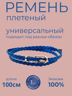 Ремень женский плетеный синий для платьев и блузок,джинс
