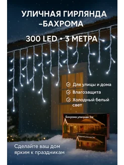 Гирлянда уличная бахрома белый свет 3 м