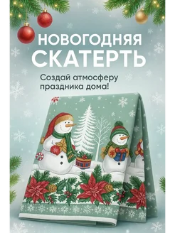 Новогодняя скатерть на стол тканевая 110*150 см лен