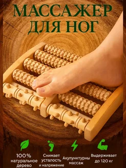 Массажер для ног и ступней роликовый деревянный