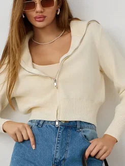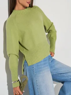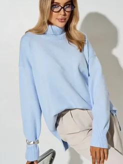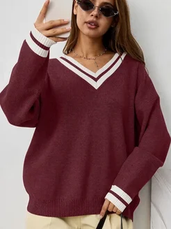Свитер вязаный v-образным вырезом оверсайз теплый
