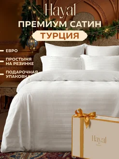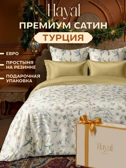 Постельное белье евро на резинке сатин в подарочной коробке