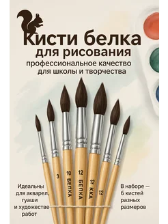 кисточки для рисования белка 6шт