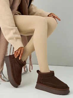 Угги зимние короткие замшевые натуральные на платформе