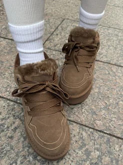 Угги зимние натуральные короткие на платформе со шнурками