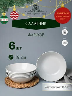 Салатники фарфоровые 19 см серия Round, набор 6 штук