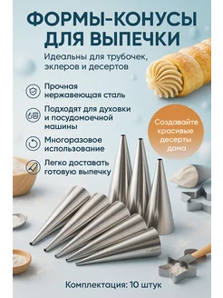 Формочки конусы 8 шт. для слоёных трубочек