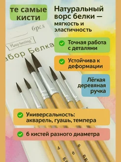 Набор кистей для рисования из беличьего ворса