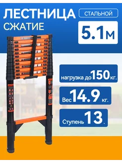 Лестница телескопическая 5.1м стальная