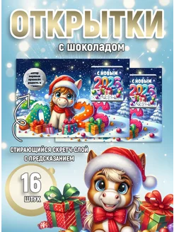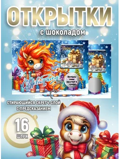 Открытка с шоколадом на Новый Год 2026 16 штук