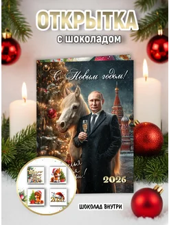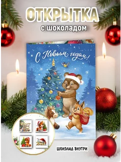Открытка с шоколадом на Новый Год 2026 1 штука