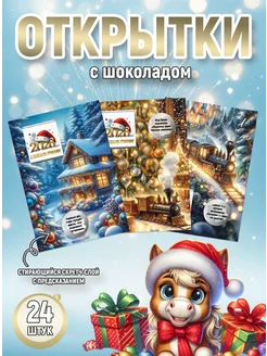 Открытка с молочным шоколадом на Новый Год 2026 24 штуки