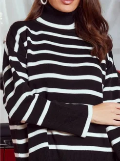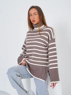 Свитер оверсайз вязаный с горлом в полоску