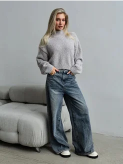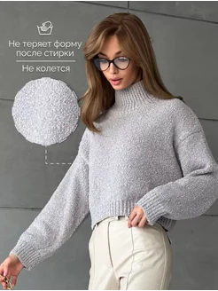 Свитер оверсайз вязаный укороченный