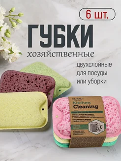 Губка для мытья посуды и уборки набор двухслойная пористая