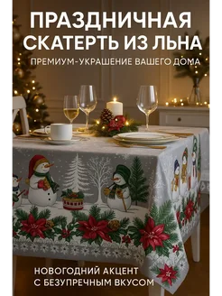Новогодняя льняная скатерть на праздничный стол