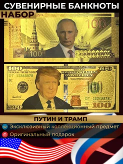 Набор сувенирных купюр 100 рублей 100 долларов Путин и Трамп