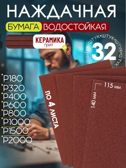Бумага наждачная 115*140 мм Р180 - Р2000, 32шт