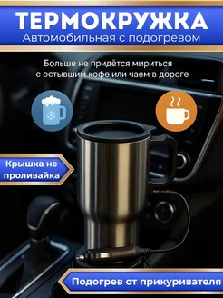 Термокружка автомобильная с ручкой и подогревом для кофе