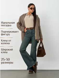 Джинсы клеш от колена синие стрейч с высокой посадкой