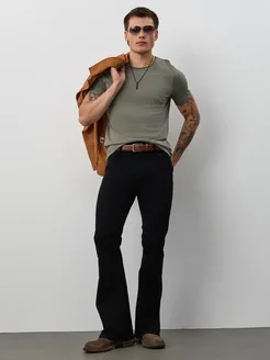 Джинсы клеш от колена черные стрейч с высокой посадкой