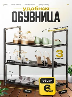 Обувница металлическая в прихожую 3 ярусов, полка для обуви