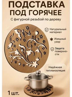 Подставка под горячее дерево круглая ажурная для кухни 20см