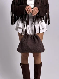 Сумка кисет плетеная коричневая Bottega Veneta на плечо