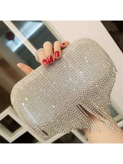 Блестящая вечерняя сумочка со стразами и платье с кисточкой
