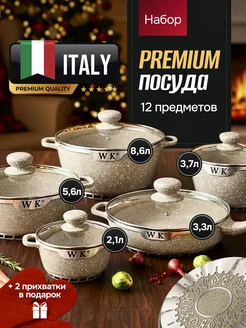 Набор Кастрюль посуда с крышками и 2 прихватки