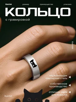 Кольцо Черный кот с гравировкой