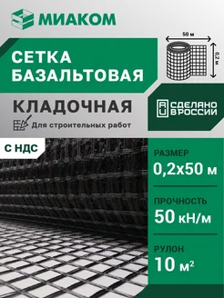 Сетка базальтовая кладочная 25 мм "МИАГРИД 50 50" 0,2*50 м