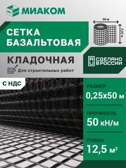 Сетка базальтовая кладочная 25 мм "МИАГРИД 50 50" 0,25*50 м
