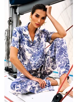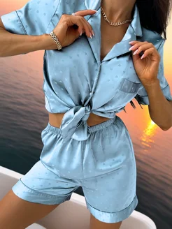 Пижама шелковая с шортами и рубашкой домашний комплект