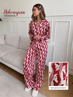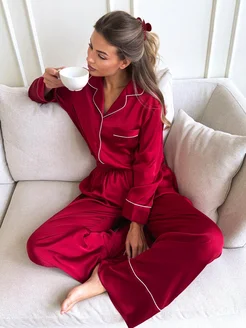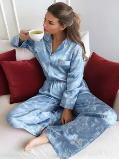 Пижама шелковая со штанами и рубашкой