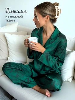 Пижама женская шелковая со штанами и рубашкой
