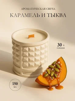 Свеча в гипсе ароматическая ручной работы Тыква и Карамель