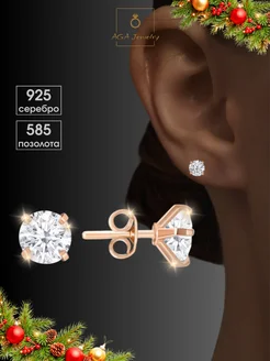 Серьги гвоздики с муассанитом серебро 925 пробы