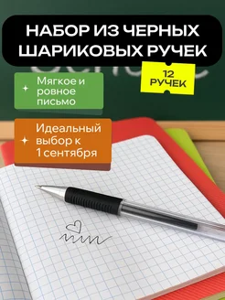 Ручка шариковая черная паста для школы и офиса набор 12 шт