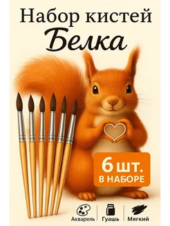 Набор кистей для рисования Белка из беличьего ворса в школу