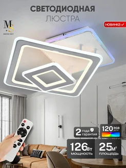 Люстра светодиодная на потолок в зал гостиную подсветкой RGB