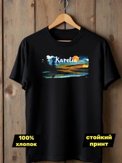 Футболка черная сувенирная Карелия природа хлопок