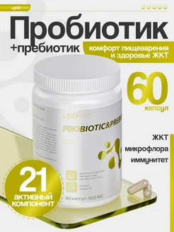Пробиотики и пребиотики для кишечника взрослым, 60 капсул