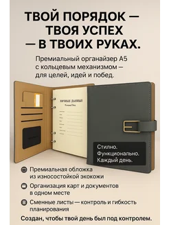 Папка-органайзер A5 с кольцевым механизмом, экокожа