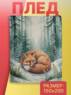 Плед флисовый 150х200 "Спящая лисичка" в зимнем лесу