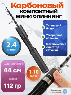 Компактный карбоновый мини спиннинг 2,4 м, тест 1-10гр